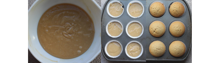 Pour the batter evenly into each liner. Bake the muffins for 25-30 minutes. They’re done when a skewer inserted into the middle comes out clean.