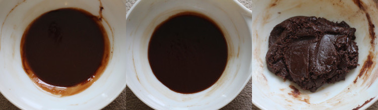 Sift the cocoa powder, flour, baking soda, and salt into the chocolate mixture. Fold it in until there are no streaks.