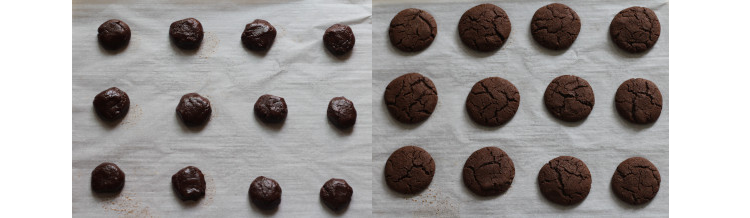 Take the dough by the tablespoon and roll it into balls. Flatten them slightly before placing them to the baking sheet, 2 inches apart.