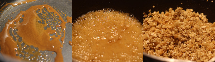 In a medium pot, set over medium heat, melt the sugar until caramelized, 2-3 minutes. Mix in the butter until fully melted. Add the honey and stir well. Turn off the heat.