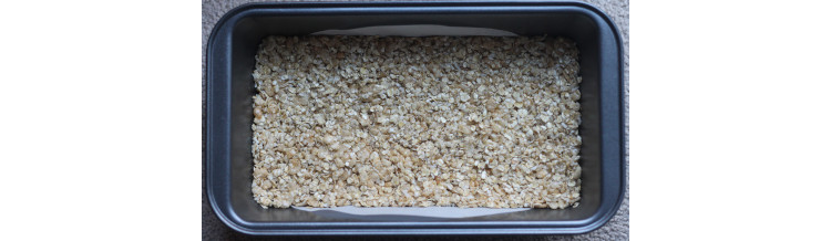 Pour the oat mixture into the lined dish, pressing it firmly into the tray.