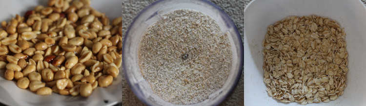 Process one cup of the oats (this will help the granola bars stick together) into a coarse grind and add it to a medium bowl. Then add the rice krispies, the rest (one and a half cups) of the untouched oats. Stir together then set aside.