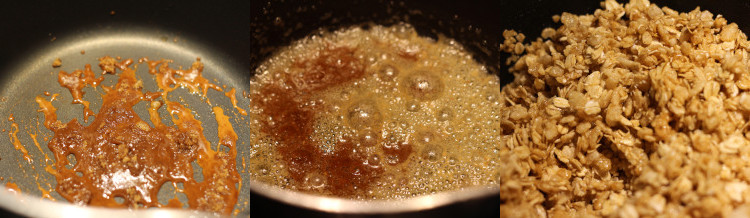 Turn off the heat. Add the oats mixture into the pot and stir until well coated. Set aside.