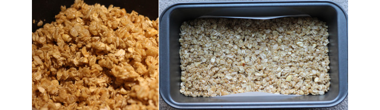 Line an 8x8 square dish with parchment paper. Pour the oat mixture into the lined dish, pressing down firmly into the tray.